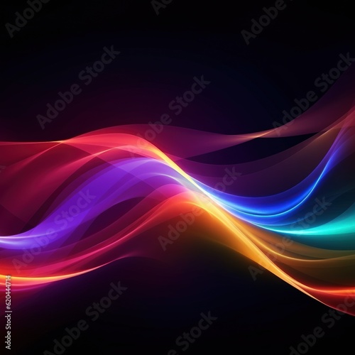 © Matyfiz, Obraz premium Visualization of sound waves. Abstract futuristic background with colorful glowing neon moving high speed wave lines and bokeh lights. Data transfer concept. Fantastic wallpaper. Generative AI