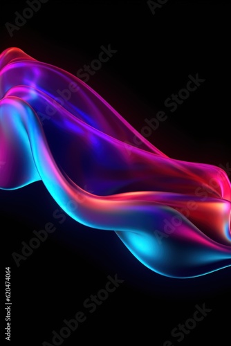 © Matyfiz, Naklejka premium Visualization of sound waves. Abstract futuristic background with colorful glowing neon moving high speed wave lines and bokeh lights. Data transfer concept. Fantastic wallpaper. Generative AI