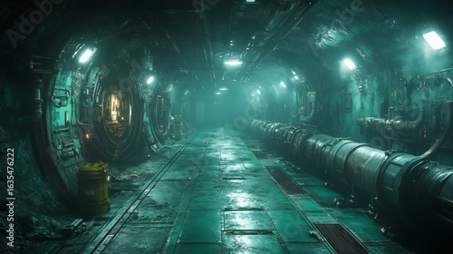 © Muhammad Rizwan, Fototapeta premium Visualize a cold metallic pipe system in a gloomy atmosphere