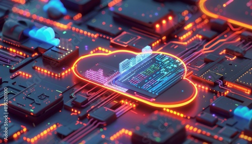 © Mark, Obraz premium Visualize a detailed 3D rendering illustrating essence of cloud computing technology