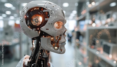 © Nawarit, Fototapeta premium Visualize a robotics lab where engineers are programming humanoid robots to perform complex tasks