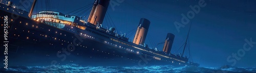 © Muhawaii, Obraz premium Visualize eye-level angle of the Titanic sinking with a terrifying, horror twist Include eerie lighting and ominous atmosphere for maximum effect