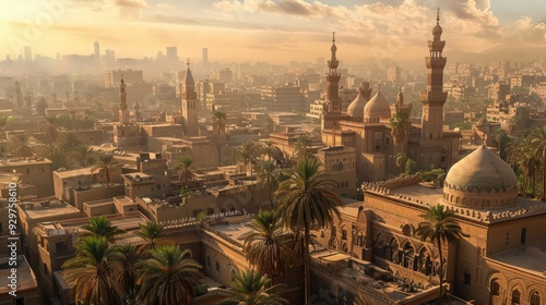 Obraz premium Visualize the Coptic Quarter and its churches in Old Cairo, seen from an...