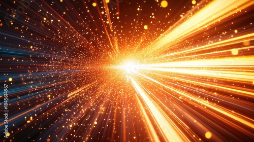 © PikePicture, Naklejka premium Visualizing abstract energetic light trails and dynamic particles moving towards a bright central point, representing concepts of data flow, technology, and rapid communication in a digital space