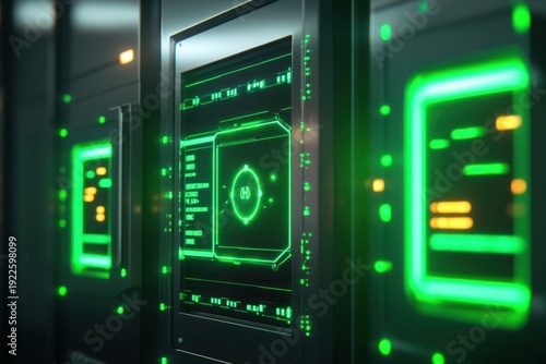 © YouraPechkin, Obraz premium Visualizing advanced data technology in a modern server room with glowing displays
