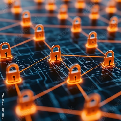 Fototapeta premium Visualizing an Invisible Network Glowing Locks Representing Data Privacy in a...