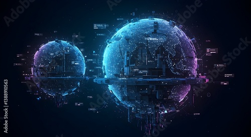 Obraz premium Visualizing Global Data Networks with Technological Spheres and Digital...