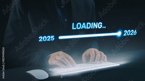 Fototapeta premium Visualizing the shift from 2025 to 2026. Progress bar symbolizing...