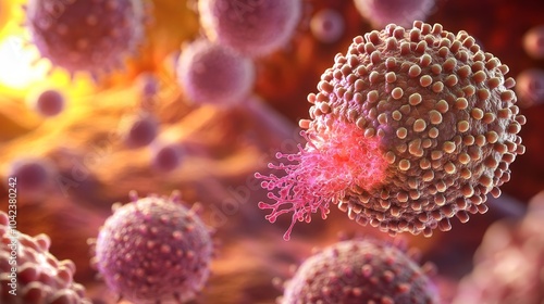 Fototapeta premium Visualizing Therapeutic Efficacy in Cancer:Apoptotic Cells Within a Tumor.Concept of cancer treatment, apoptosis, cell death, medical research, drug development.