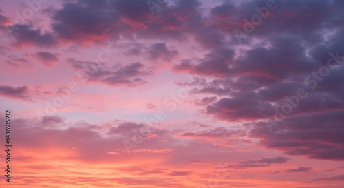 © wafi, Fototapeta premium visually striking pink colored sky filled dramatic accumulated clouds forming non representational artistic pink cloud texture beautiful celestial event end day non representational end of day