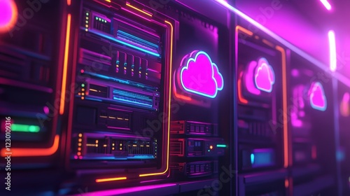Obraz premium Visually Stunning Server Rack with Holographic Cloud Elements