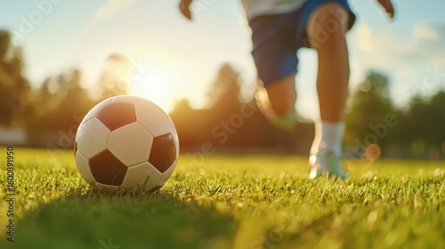 © MAY, Fototapeta premium Vitality Family playing an intense soccer match in the park on a sunny day.