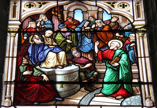 © Atlantis, Obraz premium Vitrail de l'église Saint-Seine à Corbigny en Bourgogne