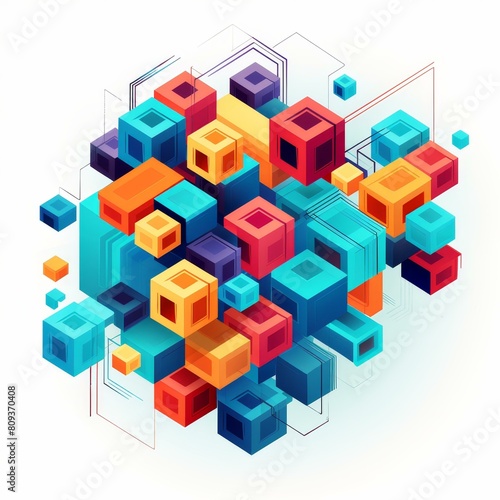 Obraz premium Vivid abstract isometric shapes in a colorful geometric vector design,...