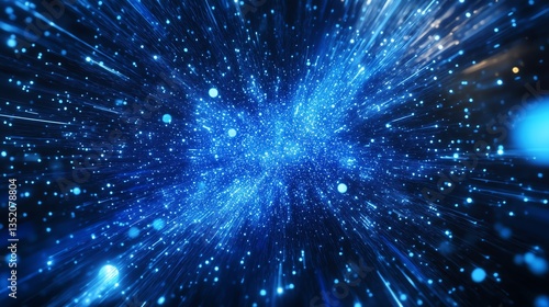 Naklejka premium Vivid Blue Digital Network: Streaming Data Particles for Fast Digital...