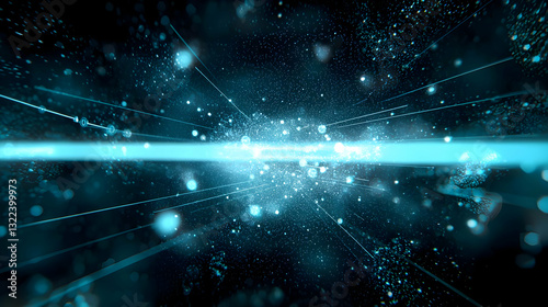 Fototapeta premium Vivid Blue Light Streaking Through Particles In Dark Digital Space Abstract...