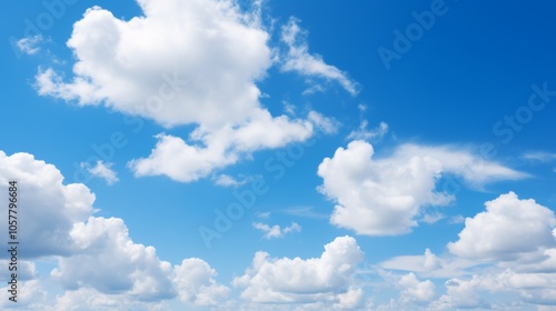 Naklejka premium Vivid blue sky with cotton-like clouds