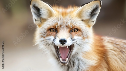 Fototapeta premium Vivid closeup of a fox showing teeth and fierce expression in a playful...