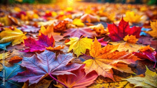 Obraz premium Vivid, colorful autumn leaves on the ground , fall, autumn, foliage, vibrant,...