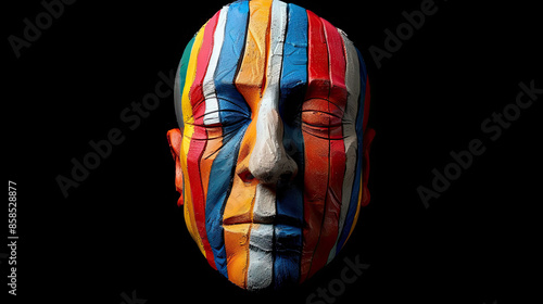 © Mohammad Xte, Naklejka premium Vivid colorful sculpted face isolated on black background