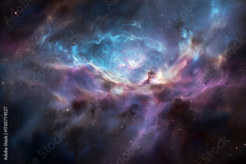 Fototapeta premium Vivid cosmic nebula filled with blue, purple, and pink clouds of gas and...