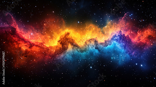 Fototapeta premium Vivid cosmic nebula revealing brilliant hues of orange, purple, and blue in...