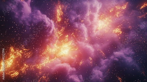 Naklejka premium Vivid cosmic nebula with bright gas clouds and glowing stars in deep space