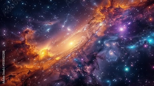 Naklejka premium Vivid cosmic scenery, showcasing a colorful nebula with a multitude of...