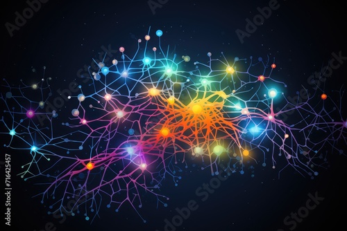Fototapeta premium Vivid creative ideation - brain radiant symphony of ingenious imagery, wit neural graphics, psychedelic visualization. Chromatic neurons dance in witty, neural neon tapestry of imaginative thinking