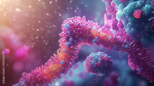Naklejka premium Vivid 3D rendering of a detailed DNA strand intertwined with a colorful...