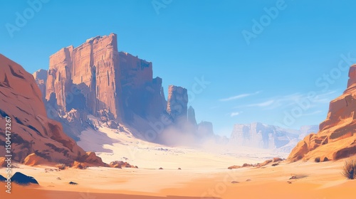 © navisatul, Naklejka premium Vivid desert landscape with sandstone formations under a clear sky.