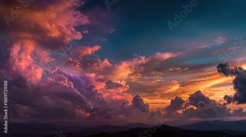 Fototapeta premium vivid dramatic sunset sky with clouds
