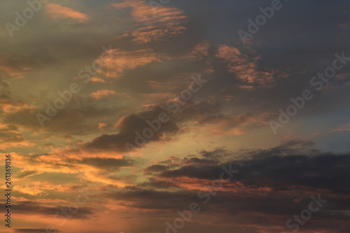 Fototapeta premium Vivid dramatic twilight sunset sky with colorful clouds and silhouettes of birds