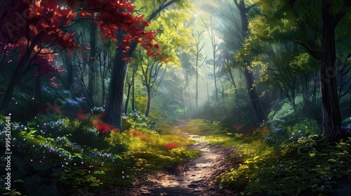 © AImmersive Imagery, Fototapeta premium Vivid forest path