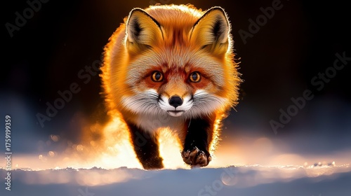 Fototapeta premium Vivid fox in motion snowy landscape wildlife photography winter environment...