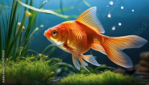 Fototapeta premium Vivid Goldenfish Swimming in a Tranquil Pond, Set against an Autumnal...