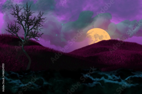 Obraz premium vivid haunting dark mockup - bokeh background design template 3D illustration...