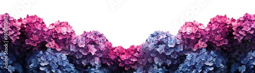 © Daeng, Obraz premium Vivid Hydrangea Border. Purple to Blue Flowers in Garden setting, graphic resource
