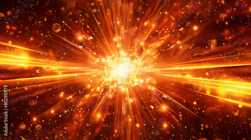 © Michael, Naklejka premium Vivid illustration of a cosmic big bang with explosive particles and light