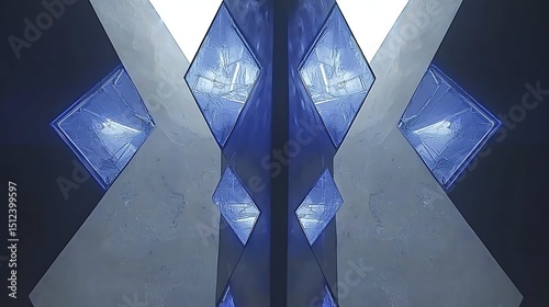 Obraz premium Vivid immersive tunnel with sci-fi geometric symmetry, glowing light panels...
