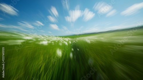 Obraz premium Vivid Meadow with Motion Blur Effect Capturing the Essence of Nature and Sky...