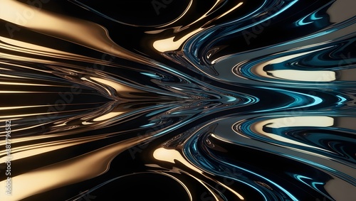 © InstantAssets, Obraz premium Vivid Metallic Reflections with Detailed Fluid Forms and Futuristic Sleek Design Abstract Background