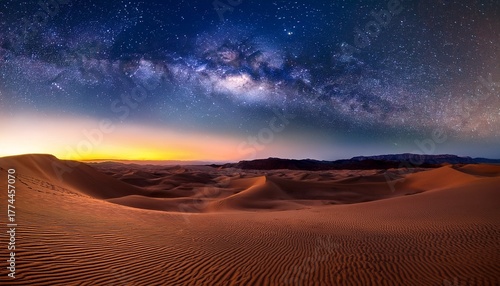 © Arber, Fototapeta premium Vivid Milky Way Descends Over Desert Sands At Golden Hour Twilight