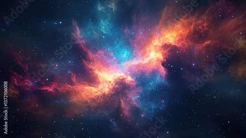 © Elang, Fototapeta premium Vivid nebula with fiery orange and cool blue hues.