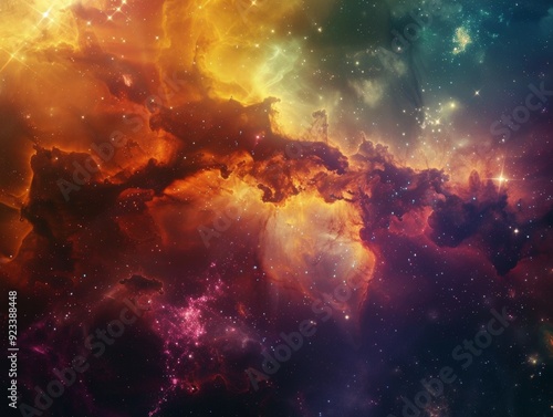 Fototapeta premium Vivid nebula with swirling colors in deep space, surrounded by stars and...