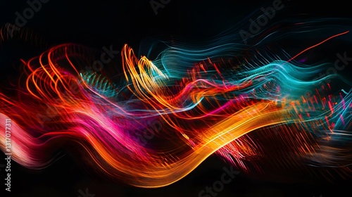 © saychandy, Fototapeta premium Vivid neon light streaks pulsating across a dark canvas, creating a dynamic and futuristic abstract art piece
