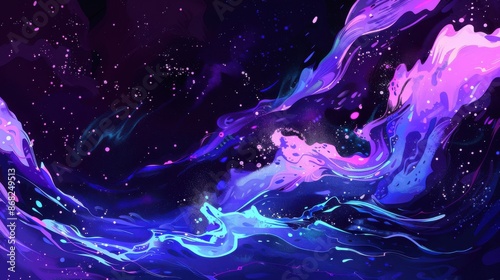 Fototapeta premium Vivid Neon Space, Abstract Digital Art of Colorful Cosmic Clouds, Stars and...