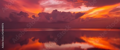 © RobinsonIcious, Fototapeta premium Vivid orange and pink clouds reflecting the days last light over the horizon