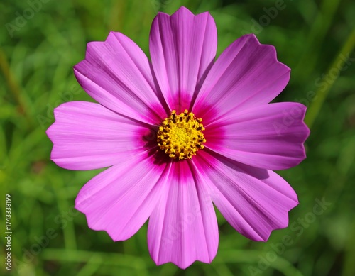 © Mengarungi, Obraz premium Vivid pink blooms with yellow center on green leaf