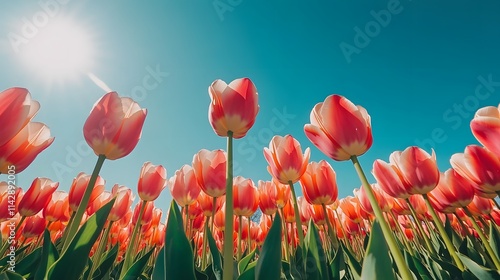 © Kevin, Fototapeta premium Vivid Pink Tulips Bask In Bright Sunlight